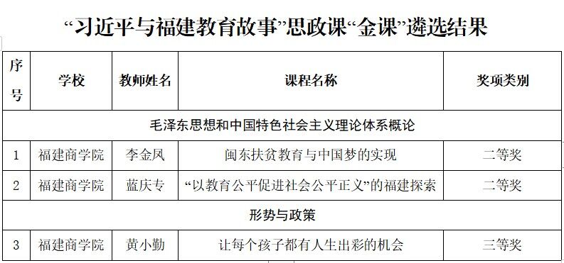 根据《中共福建省教育工委关于公布“习近平与福建教育故事”思政课“金课”遴选结果 暨教学展示活动的通知》(闽委教思〔2023〕14 号)文件精神,米兰官网喜获二等奖2项,三等奖1项,具体如下: