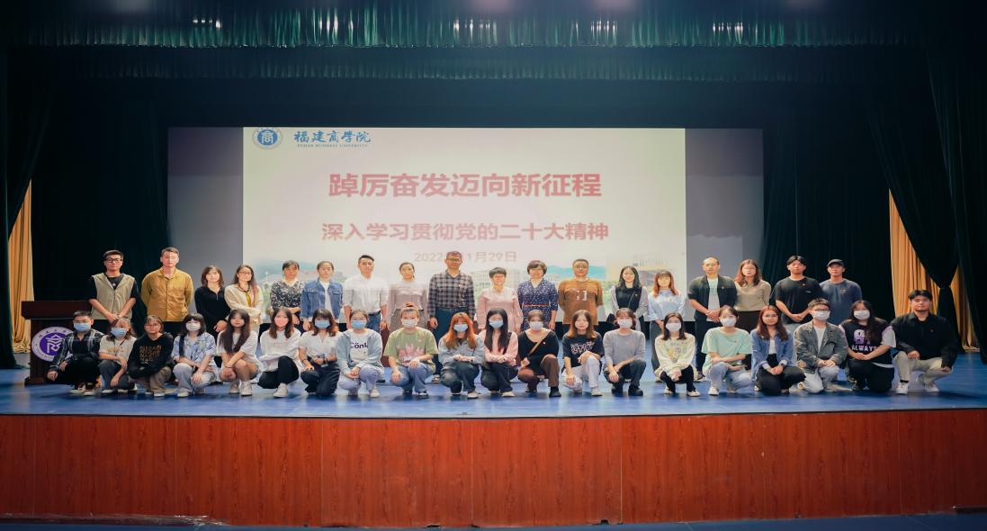 近日,福州市委讲师团成员、福建师范大学杨林香教授在我校连江校区学生活动中心开展题为《踔厉奋发迈向新征程——深入学习贯彻党的二十大精神》的专题讲座。我校艺术设计学院、米兰milan官方网站、财务与会计学院、团委、习近平新时代中国特色社会主义思想学生读书社及“青马班”师生代表参加了学习。