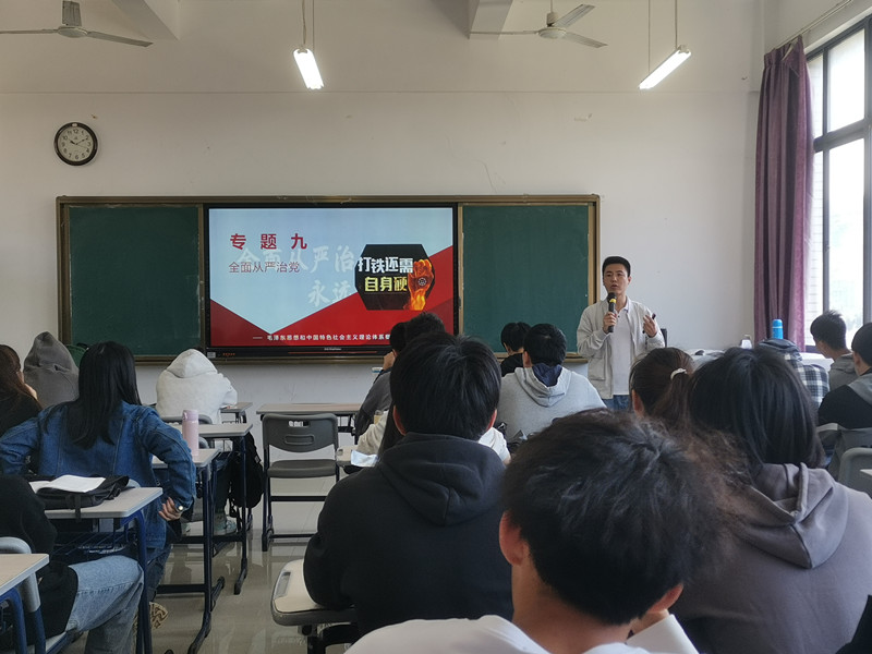 5月18日上午,米兰milan官方网站毛泽东思想和中国特色社会主义理论体系概论教研室赵敏老师以“全面从严治党”为主题,在连江校区诚信楼411举行了思政课教学示范活动,近60名师生参与观摩。