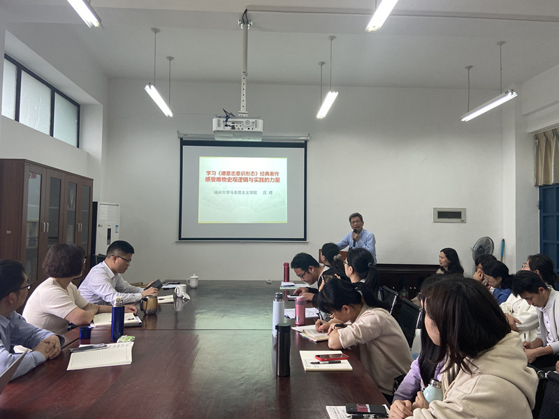2022年5月24日下午,马克思主义基本原理教研室邀请福建省思想政治理论课教学指导委员会副主任委员、原福州大学米兰milan官方网站院长庄穆教授做了题为“学习《德意志意识形态》经典著作,感受唯物史观逻辑与实践的力量”集体备课专题学习。教务处处长庄惠明参加了本次集体备课会,集体备课会由原理教研室主任黄玮老师主持。