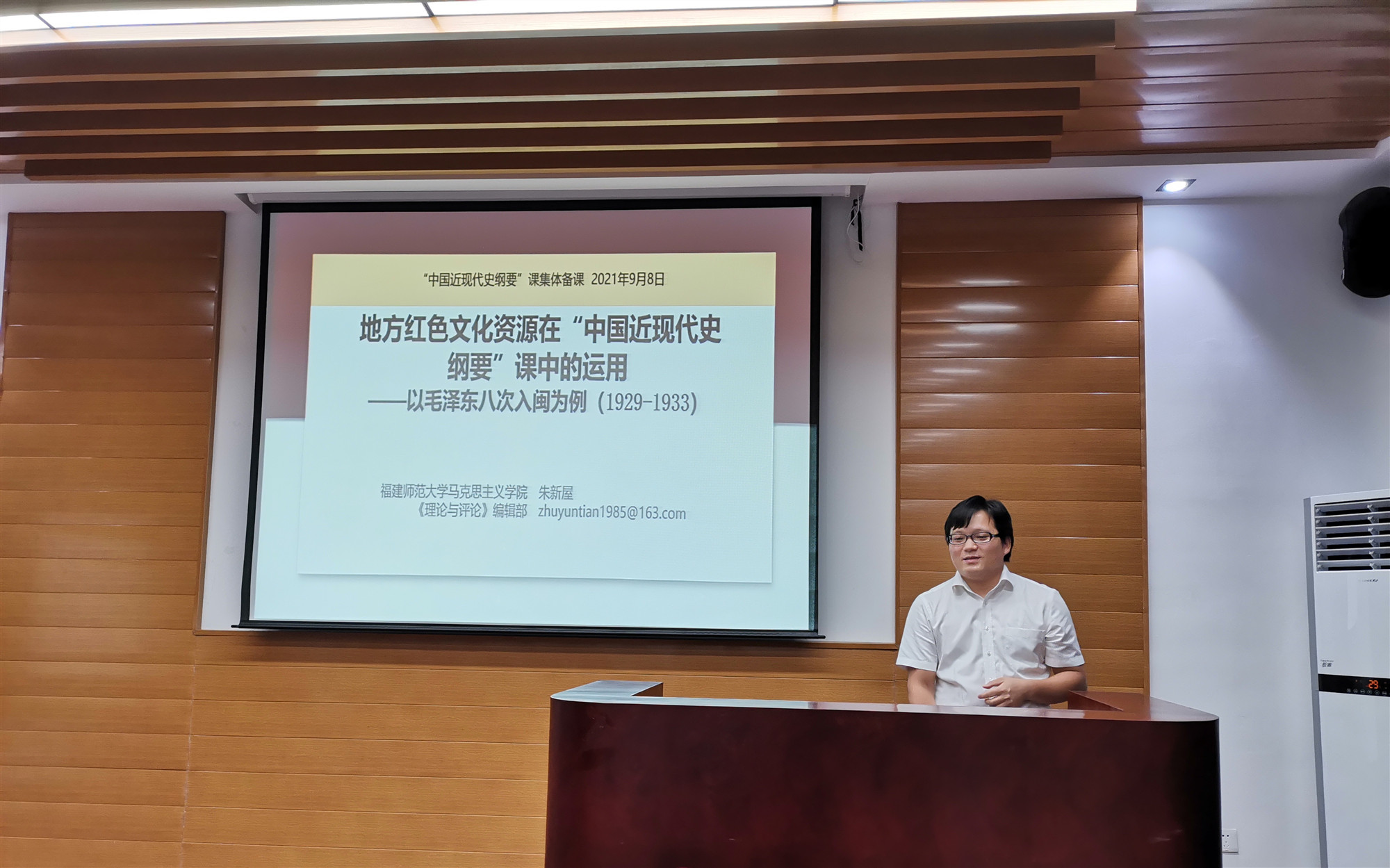 9月8日下午,党史学习教育省委宣讲团成员、福建师范大学朱新屋副教授应邀到我校作题为“地方红色文化资源在‘中国近现代史纲要’课中的运用——以毛泽东八次入闽为例(1929-1933)”的示范教学。校党委副书记吴访益和米兰milan官方网站教师参加学习。
