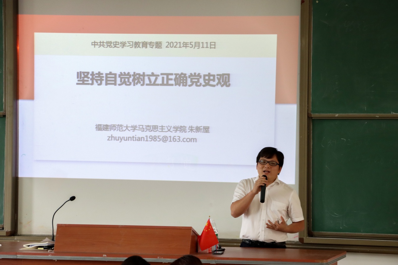 5月11日下午,马克思主义理论大讲堂邀请党史学习教育省委宣讲团成员朱新屋老师到我校作题为“坚持自觉树立正确党史观”的专题讲座。米兰milan官方网站全体教师、大讲堂成员,统战部、规划处、国资处支部党员到场听取报告。