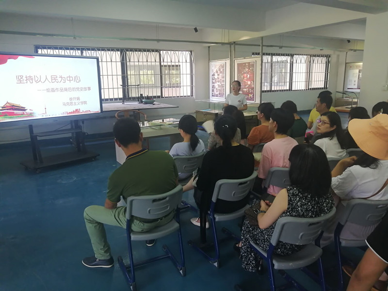 本次宣讲以《坚持以人民为中心——绘画作品背后的党史故事》为主题,从加强党的建设,情为民所系;切实改善民生,利为民所谋;倡导践行民主,权为民所用三个方面出发,在一幅幅绘画作品中阐述和讲解了中国共产党始终坚持以人民为中心的发展思想,团结带领中华儿女为实现中华民族伟大复兴而不懈奋斗的光辉历程。