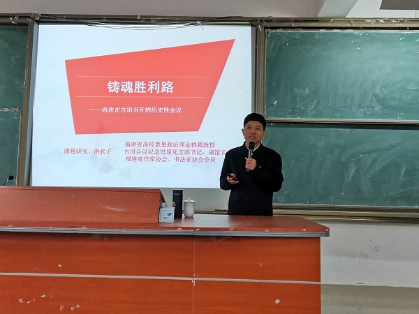 为深入学习贯彻习近平总书记关于学校党建和思政工作的重要指示批示精神,推动学校师生深入学好党史、新中国史、改革开放史、社会主义发展史,12月8日,古田会议纪念馆原副馆长、福建省高校思想政治理论课特聘教授洪武子莅临我校开展题为《铸魂胜利路——两次在古田召开的历史性会议》讲座。校党委副书记吴访益和学工部、米兰milan官方网站部分教师以及校习近平新时代中国特色社会主义思想读书社社员共130多人聆听此次讲座。