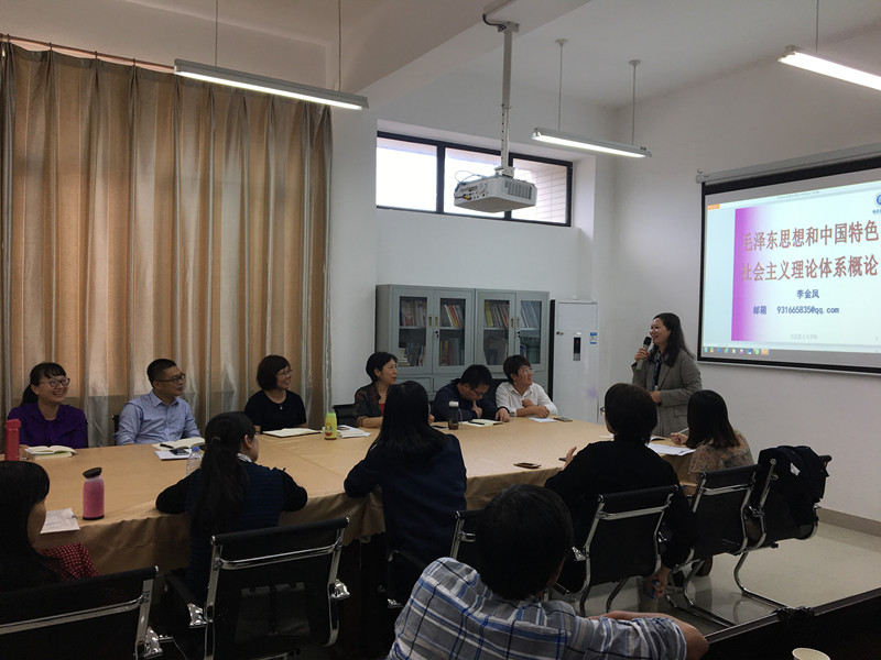 学院四个教研室依次选取各自的一个教学专题展开主讲、研讨。毛泽东思想和中国特色社会主义理论体系教研室由李金凤老师主讲,围绕着绪论中为什么学、怎么学、学什么三个问题展开,风趣幽默阐述了开学第一堂课的重要性,分享了自己的教学心得和分组教学的方法。中国近现代史纲要教研室由李莉老师就《纲要》课教学应该注意的几个问题展开,分析了史纲课与历史课、毛概课之间的差异,强调了经典阅读的重要性以及史料运用的规范与准确,李莉老师认真严谨的治学态度获得全体教师的热烈掌声。马克思主义基本原理教研室由黄玮老师就《认识世界和改造世界》着手,讲述了在授课中如何运用生活中细致琐碎的故事阐释基本原理,如何深入浅出,如何把哲学讲活,讲得引人入胜,亲切易懂。思想道德修养与法律基础教研室由蓝福秀老师分享了《“基础”课法律部分教学面临的矛盾和探索》,探讨了如何在有限课时的前提下,解决法律部分授课内容庞杂性、专业性、枯燥性的问题。四位主讲老师精心准备、精彩发言、倾囊相授,让全体教师受益匪浅,获益良多。