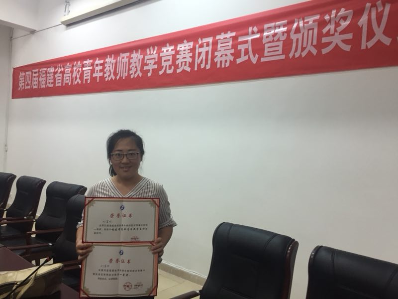 6月20日-21日,由福建省总工会、福建省教育厅主办的第四届全省高校青年教师教学竞赛在武夷学院举办。米兰官网刘贤玲老师参加了本次比赛。经过两天的角逐,最终以小组排名第3的成绩荣获一等奖,被授予“福建省高校青年教学名师”荣誉称号。