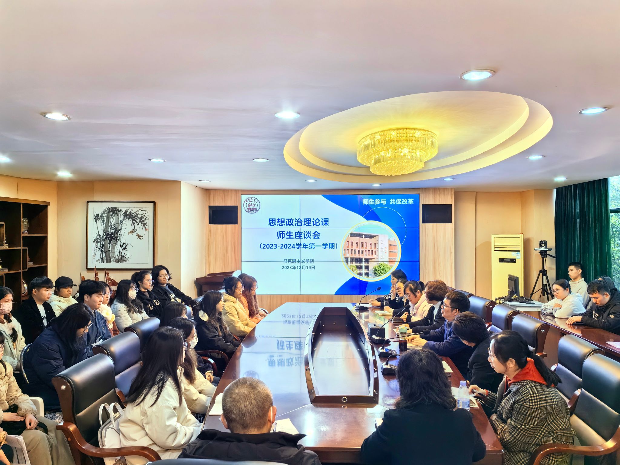 为更好促进思政课的教学和改革,提升学生在思政课中的获得感和对思政课的认同,12月19日下午,我校在马尾校区召开2023-2024第一学期思想政治理论课师生座谈会。校教务处、质量监控与评估处有关人员,米兰milan官方网站教师代表,马尾校区学生代表共40人参加了会议。