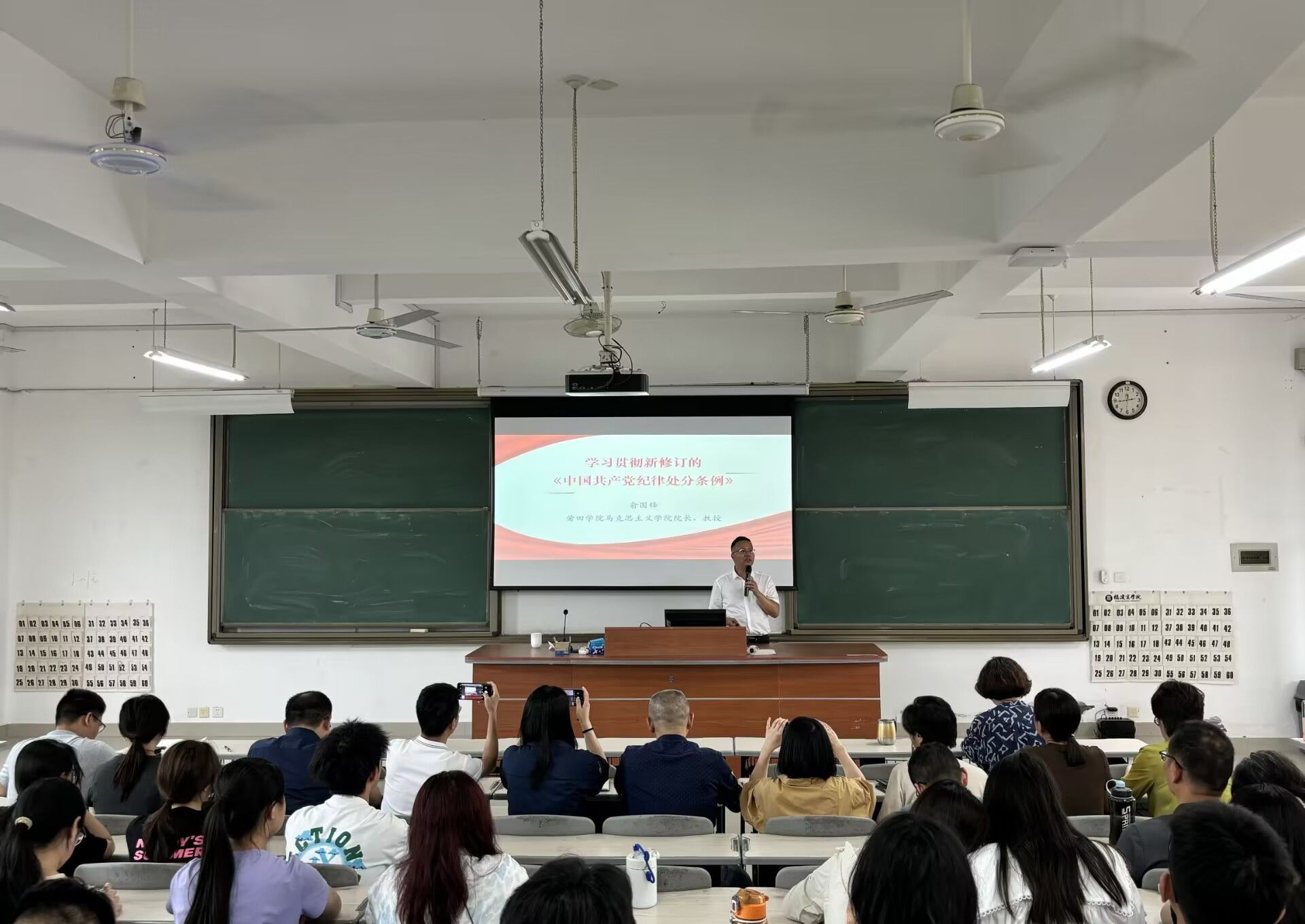 为深入学习贯彻修订后的《中国共产党纪律处分条例》,5月7日下午,米兰milan官方网站、旅游与休闲管理学院联合举办了“学习贯彻新修订的《中国共产党纪律处分条例》(以下简称《条例》)”专题讲座,讲座由莆田学院马院院长俞国锋教授做报告。米兰milan官方网站、旅游与休闲管理学院全体党员教师、部分学生党员及习近平新时代中国特色社会主义思想读书社社员共100多人参加本次讲座。