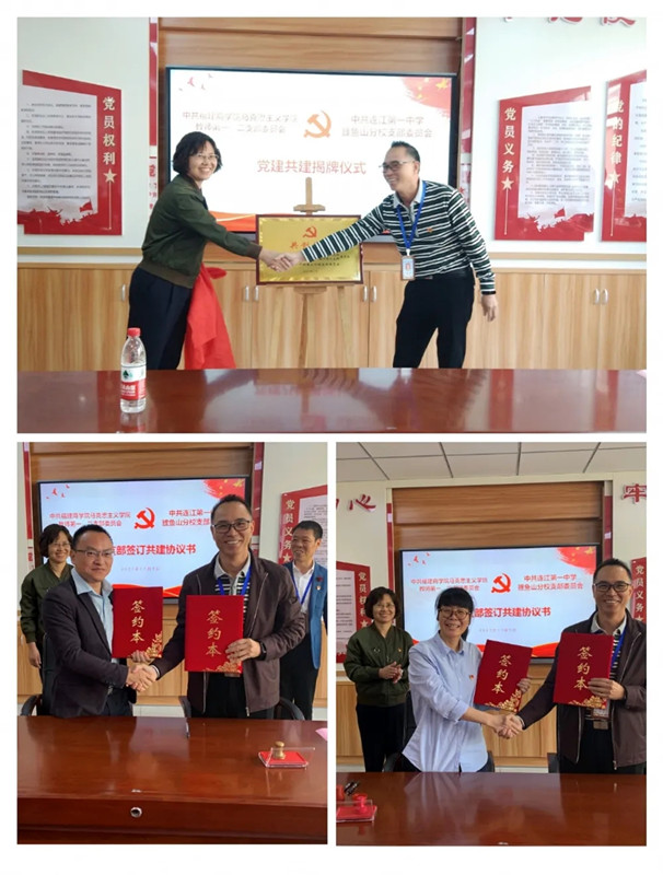11月9日,福建商学院米兰milan官方网站教师第一、二党支部与连江一中鲤鱼山分校党支部党建共建签约仪式在连江一中鲤鱼山分校举行。米兰milan官方网站党委书记、院长林萍及副院长张发友,连江一中鲤鱼山分校党支部书记林卫、校长陈为信及学校班子成员,双方党支部教师共30余人参加了签约仪式。