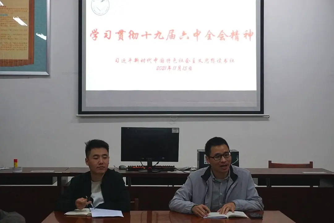 为进一步学习贯彻党的十九届六中全会精神,深入学习党的百年奋斗成就和历史经验,校习近平新时代中国特色社会主义思想读书社于2021年11月15日晚在连江校区自强楼114活动室开展十九届六中全会精神学习、交流活动。米兰milan官方网站赵敏老师、林甦垚老师、叶陈钦老师及读书社部分社员参加学习。活动中,师生热议十九届六中全会精神。