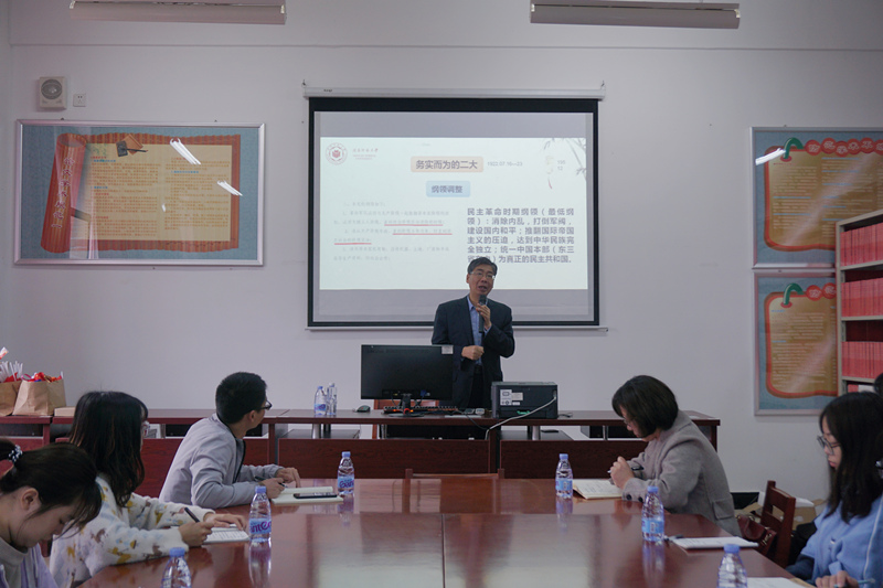 为认真学习贯彻落实习近平总书记在党史学习教育动员大会上的重要讲话精神,推动学校师生深入学好党史、新中国史、改革开放史、社会主义发展史,3月13日上午,闽南师范大学米兰milan官方网站院长陈再生教授应邀莅临我校开展题为“跟随大会学党史”的专题讲座。米兰milan官方网站部分教师以及校习近平新时代中国特色社会主义思想读书社社员聆听了讲座。