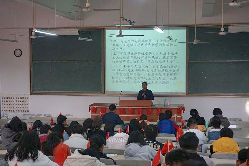 12月3日下午,福州大学庄穆教授到我校作题为“天才世界观的萌芽——《费尔巴哈提纲》解读”(下称《提纲》)的讲座。米兰milan官方网站部分教师以及习近平新时代中国特色社会主义思想读书社社员近200人聆听了此次讲座,米兰milan官方网站负责人主持讲座。
